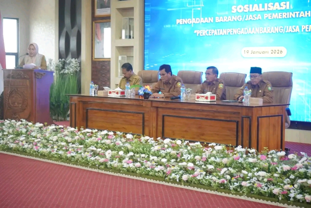 SUMBAWA,beritapembaharuan (19 Januari 2026) Bupati Sumbawa, Ir. H. Syarafuddin Jarot, MP, membuka acara Sosialisasi Pengadaan Barang/Jasa Pemerintah Tahun 2026 dengan tema ” Percepatan pengadaan Barang/Jasa Pemerintah” pada acara tersebut turut hadir, Wakil Bupati, Sekda, Staf ahli, Asisten 2, Kepala OPD, Para Camat, dan lurah, acara bertempat di lantai 3 Kantor Bupati Sumbawa, Senin (19/1/2026)