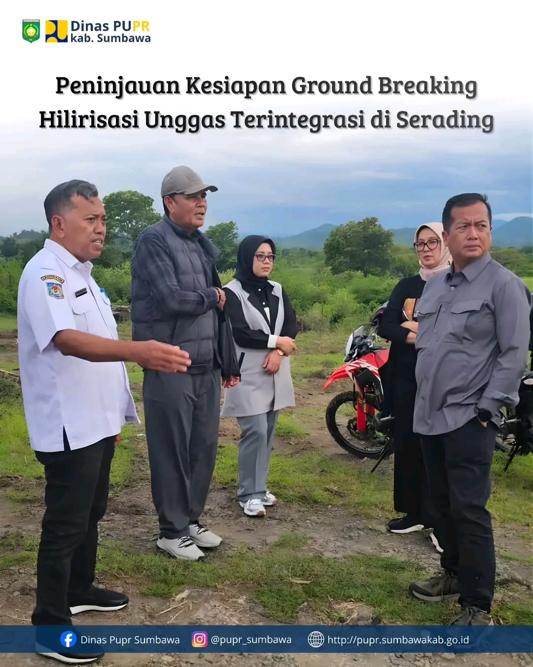 Sumbawa — Rabu (21/01/2026), Kepala Dinas PUPR Kabupaten Sumbawa bersama Bupati Sumbawa mendampingi Gubernur Nusa Tenggara Barat meninjau kesiapan rencana ground breaking proyek Hilirisasi Unggas Terintegrasi di Serading. Peninjauan dilakukan untuk memastikan kesiapan infrastruktur dan akses pendukung sebelum pelaksanaan pembangunan, yang diharapkan dapat mendorong pertumbuhan ekonomi daerah melalui penguatan sektor peternakan dan industri pengolahan unggas.