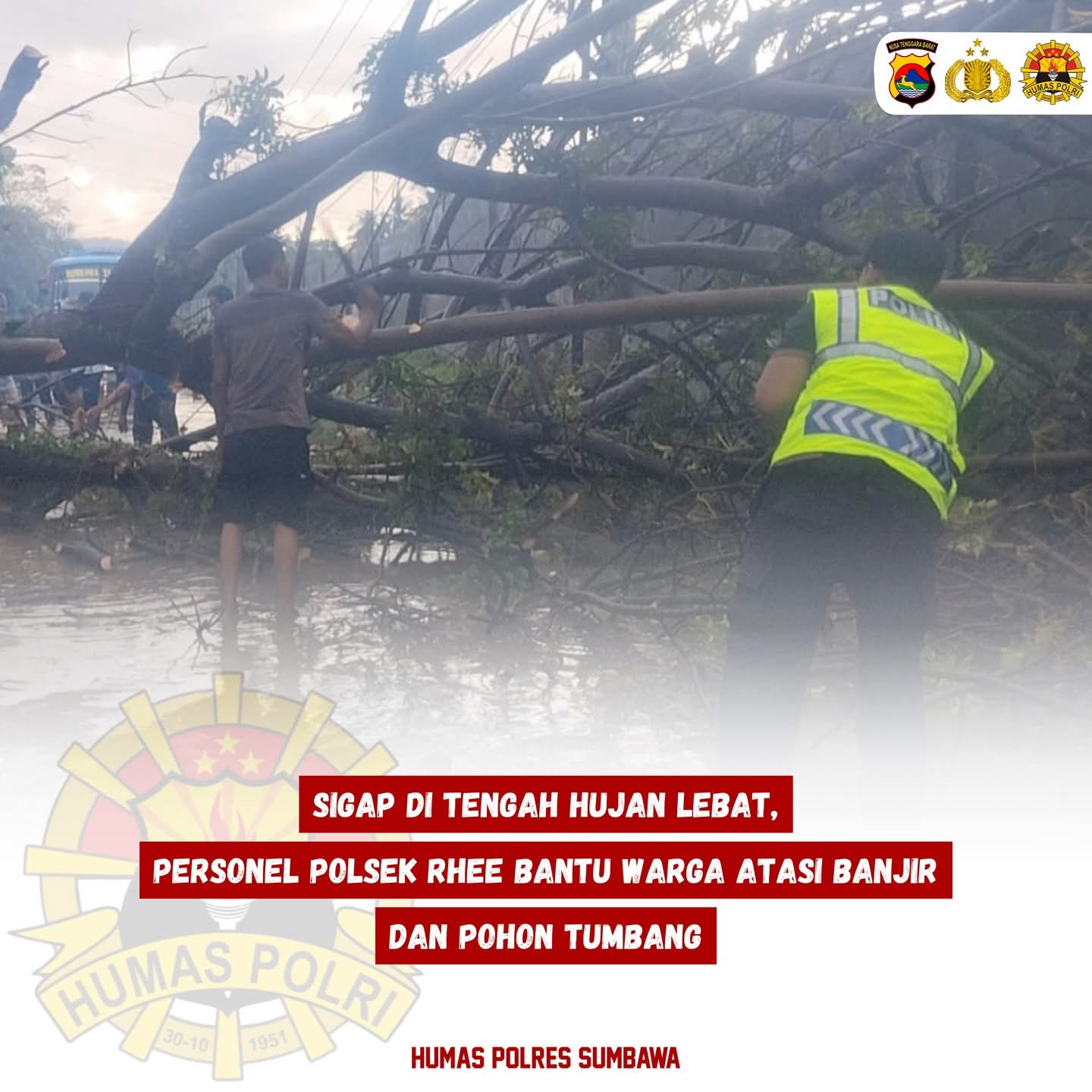 Sigap di Tengah Hujan Lebat, Personel Polsek Rhee Bantu Warga Atasi Banjir dan Pohon Tumbang September 17, 2025